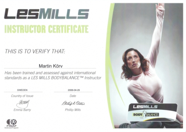 2007 rahvusvaheliselt litsenseeritud Les Mills BODYBALANCE™ treener