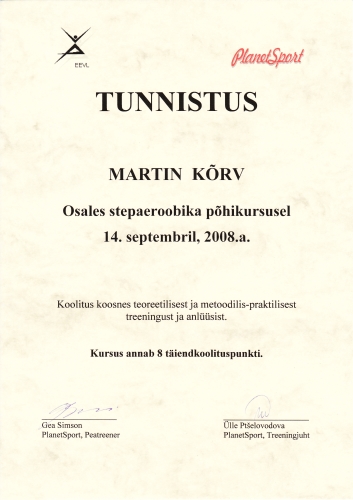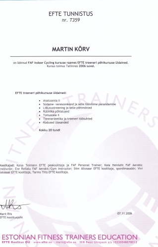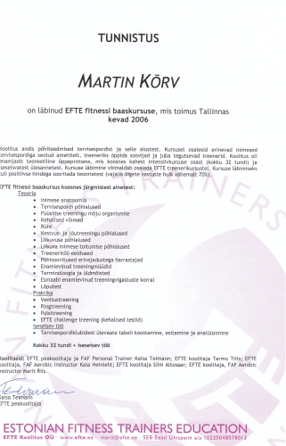 2006 EFTE (Estonian Fitness Trainers Education) treeneri põhikursus