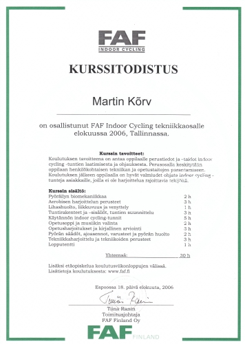2006 FAF (Fitness Academy of Finland) Indoor Cycling Instructor koolitus