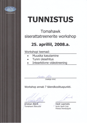 2008 Tomahawk I.C.E. (Indoor Cycling Education) täiendkoolitus